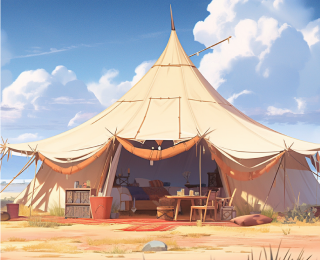 Compact and easily moved, this grand tent will see you in luxury on the dunes.
